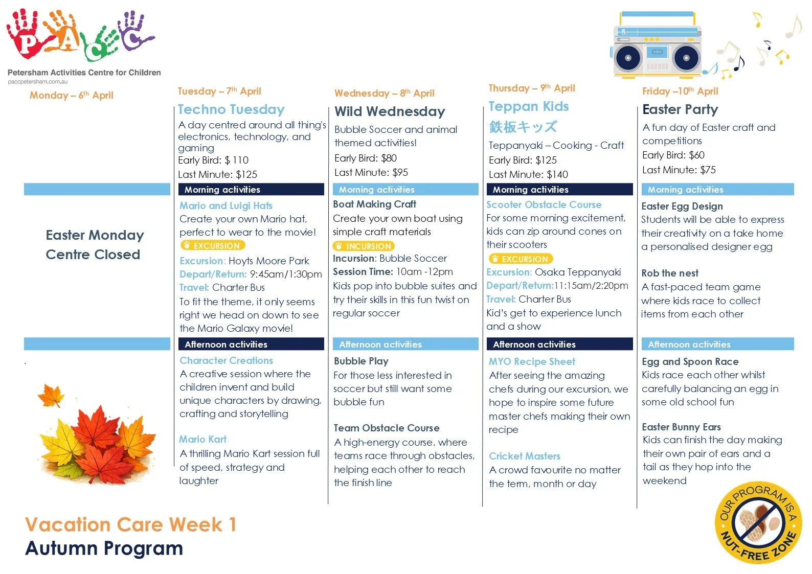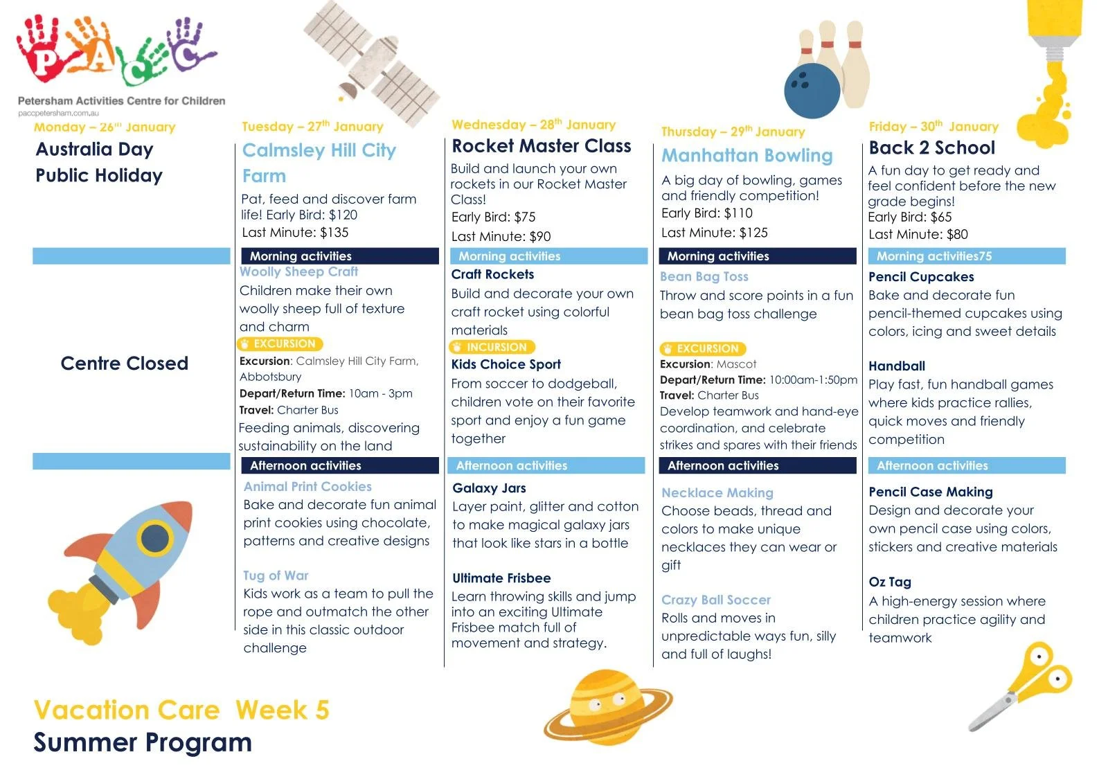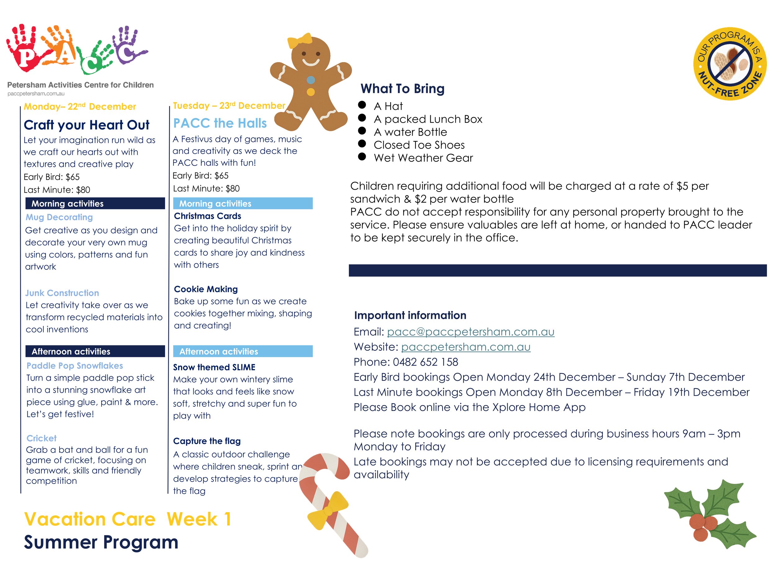 The Vacation care program is available four weeks prior to the end of each term. You will be notified via email, and as a notification in Xplor, when the program is released. Petersham Public school students have an exclusive “Early Bird” booking period which is usually two weeks. After this period the “Last Minute” bookings begin, and is open for release to the children within the local community and the general public.